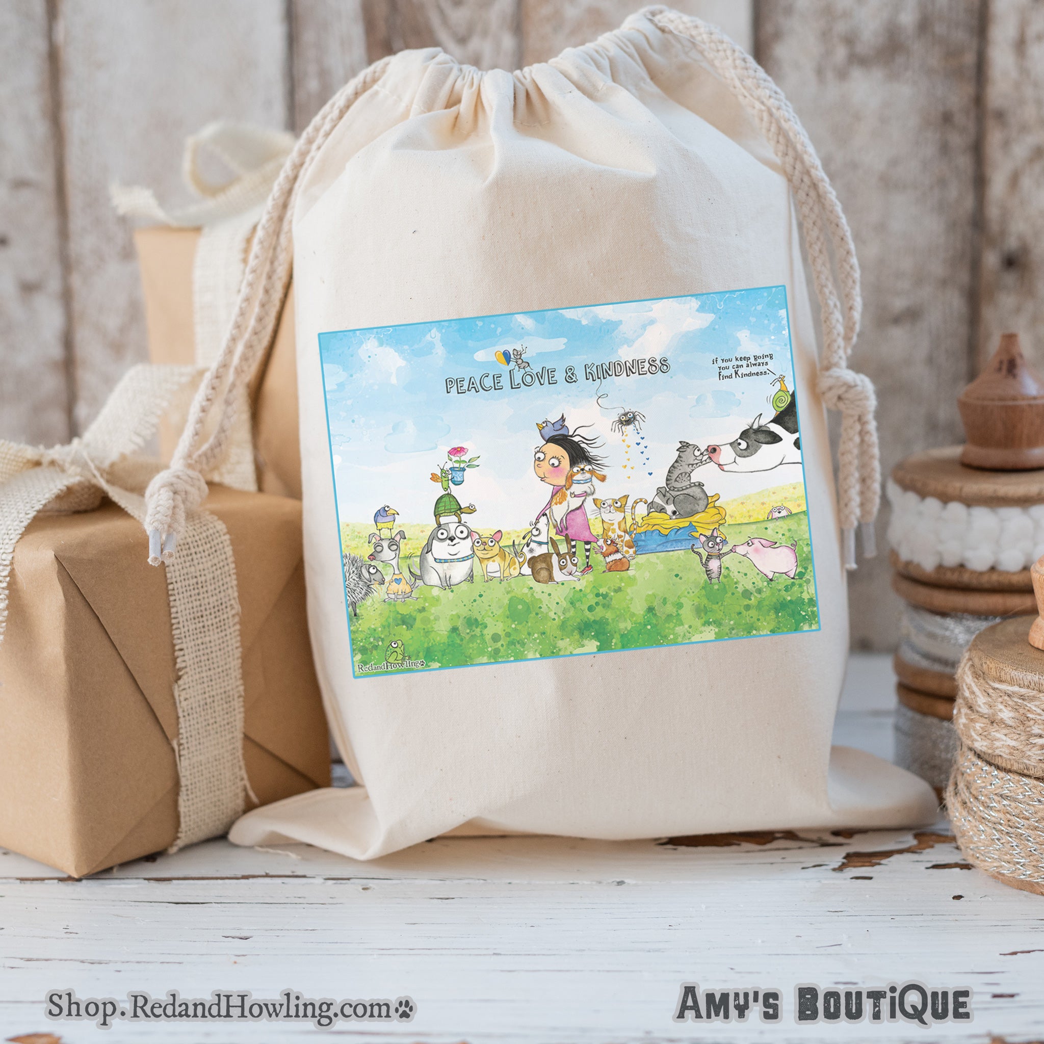Make Gift-Giving more Mindful, Memorable, and Easy with my 12" x 15" cotton canvas drawstring gift bags! Hand-printed by me in my Virginia studio!